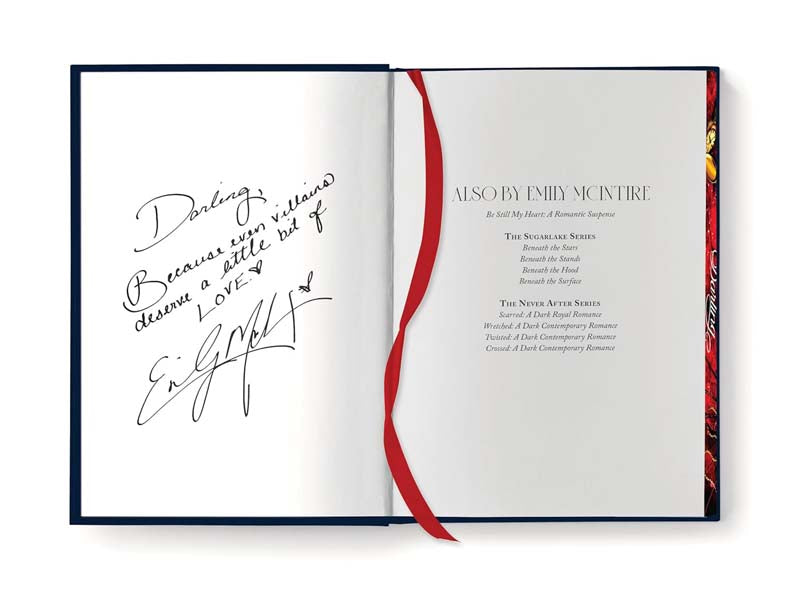 This collector’s edition includes a black foil-accented hardcover, red and black sprayed edges, custom endpapers, and a bonus never-before-seen scene from James’s point of view. A darkly romantic collector's item for fans of modern fairy tale twists.